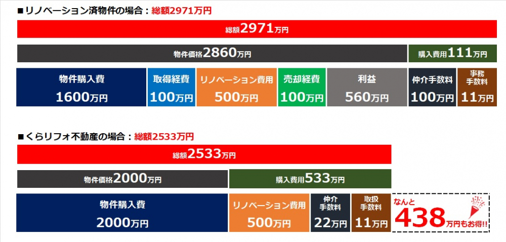 くらリフォ不動産は物件選びとリノベーション(リフォーム)工事を最初の段階からお客様と一緒に考えることができるため、物件とリノベーション(リフォーム)内容など、お客様の理想とのミスマッチとなるリスクを回避できます。